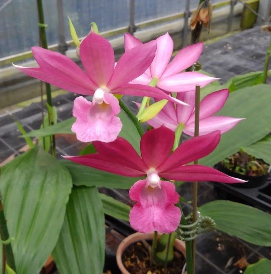 2019年に交配したPhaiusとCalantheが開花しました。母体がピンクの品種はピンクの花、母体が白花の品種は白い花が出ました。花粉のピンクはあまり出現しませんでした。花の形に影響を及ぼしています。今年は5株の初花でしたが来春開花する株は植替えを終えて急成長中です。欲しい方は商品紹介のコーナーをチェックしてください。